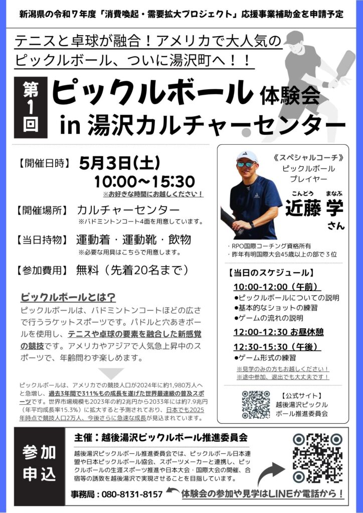ピックルボールは、アメリカでは競技人口が過去3年で311%増加し、2024年には1,980万人に達したほどの爆発的な成長を遂げており、ピックルボールを通じて、世界の多くの方々に越後湯沢の魅力を感じていただきたいと考えています。