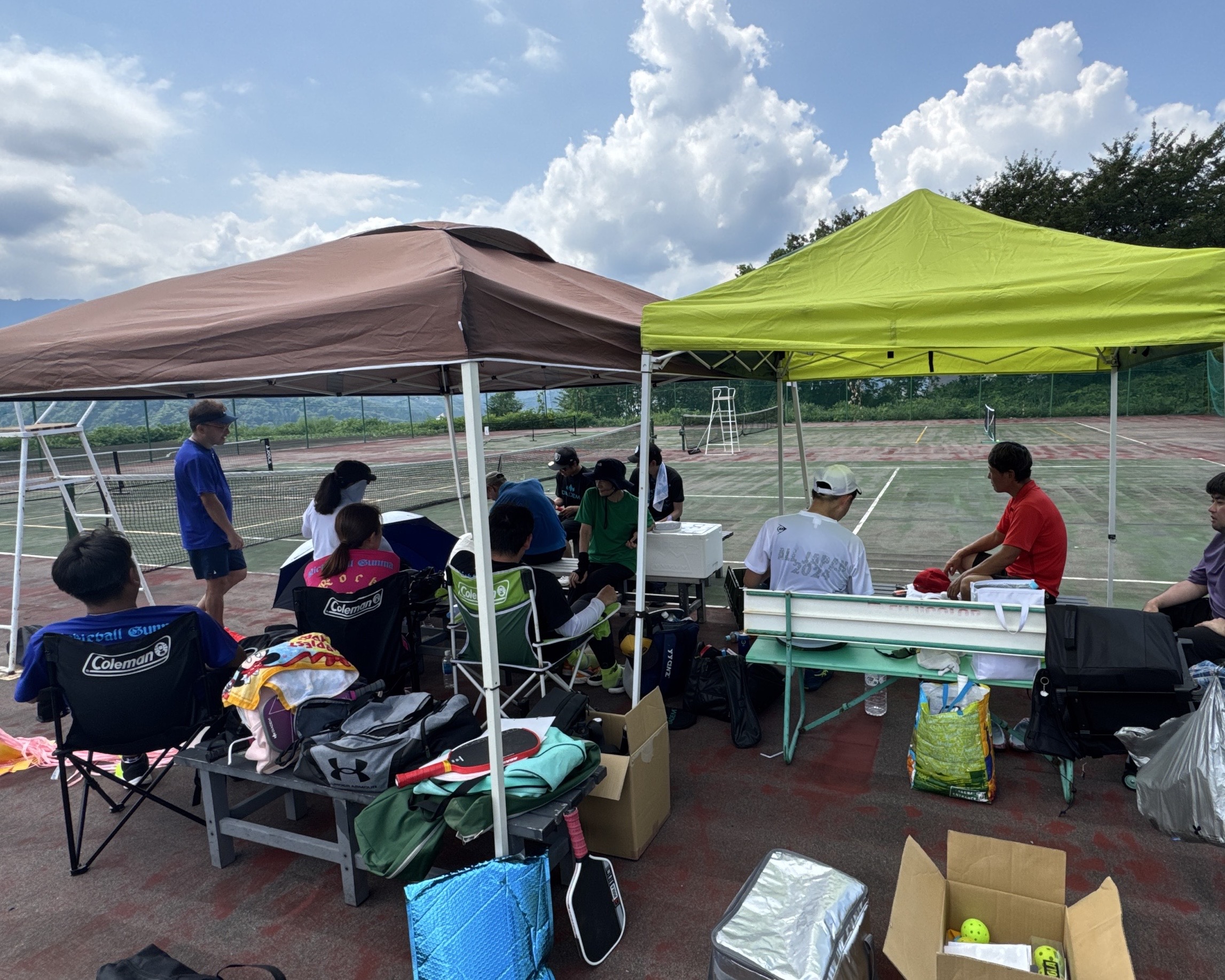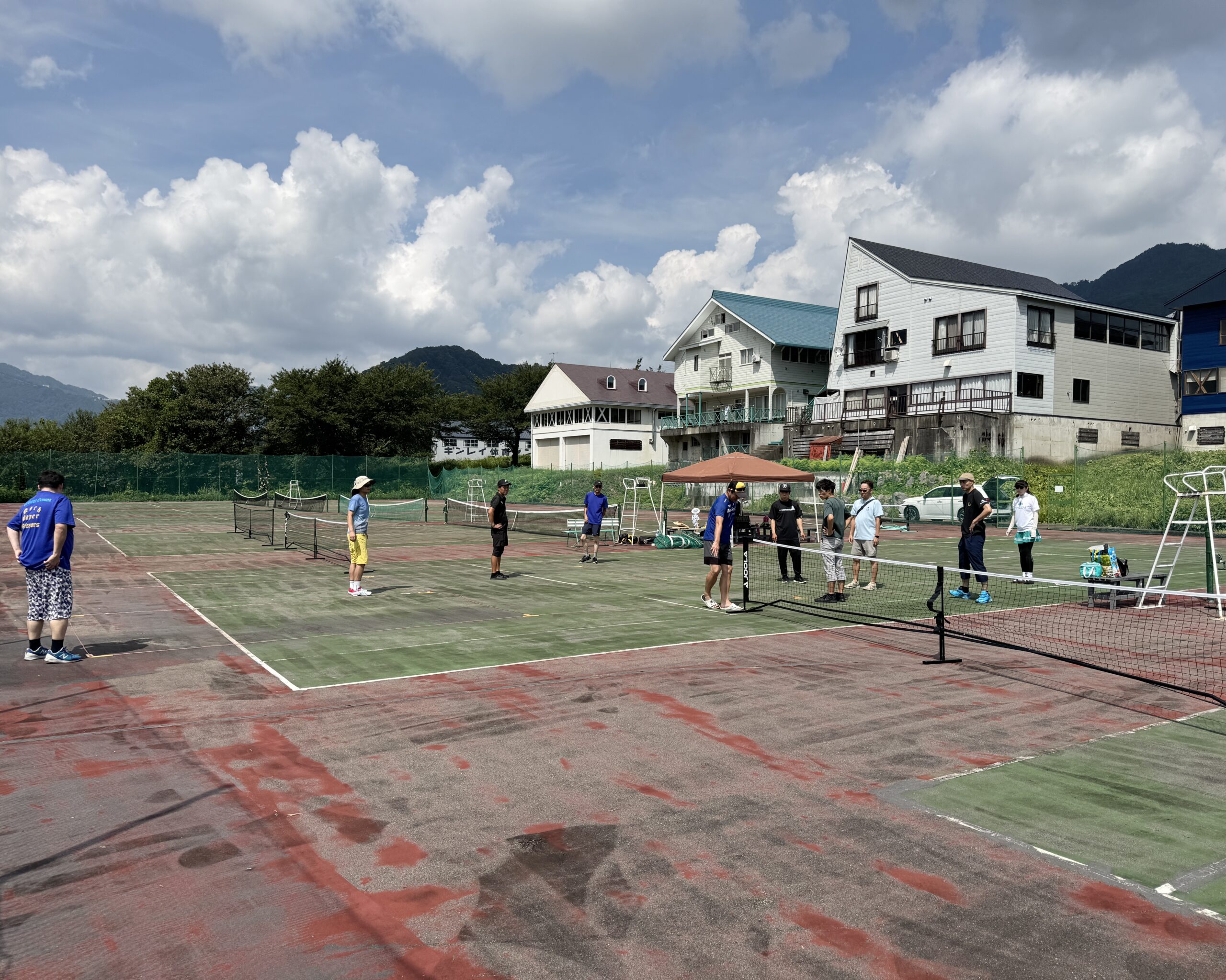 翌日は天候と参加者の皆様と相談し、テニスコートにて自由に練習を行いました。