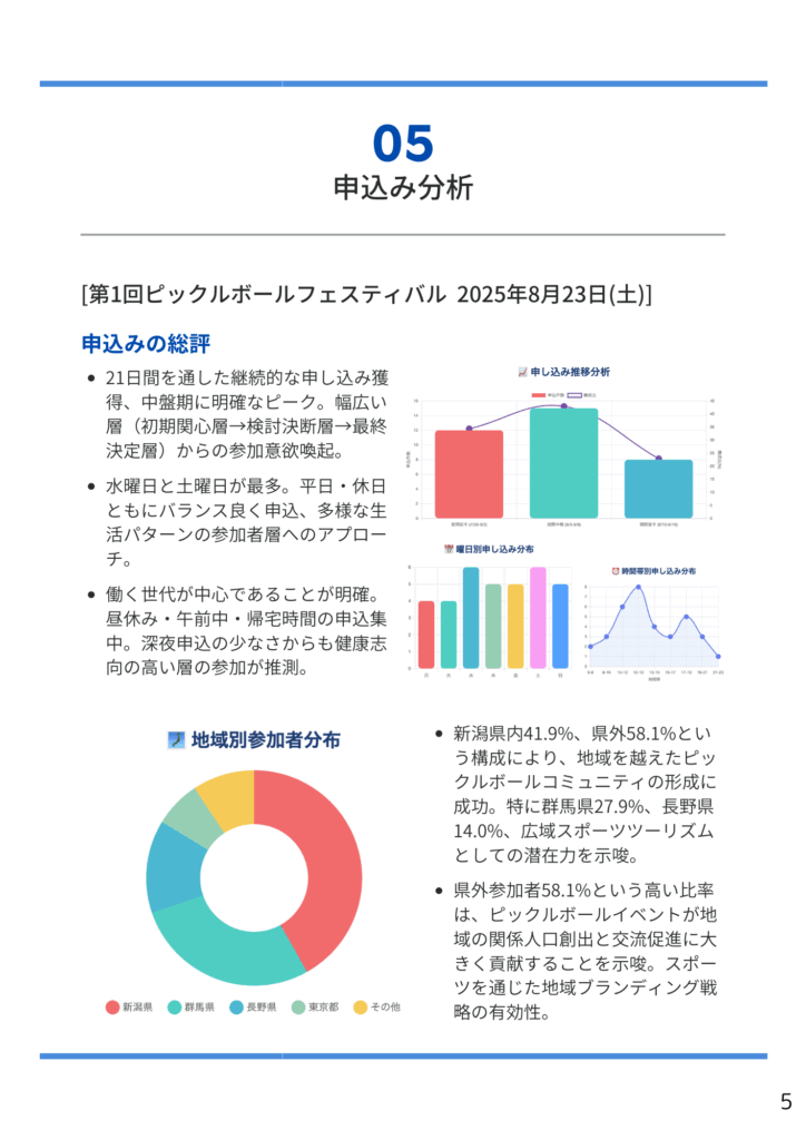 体験会やスクール、初心者向けイベントを定期的に開催し、住民の運動習慣者を20%増やすとともに、夏季観光客の30%増加を目指して幅広い層の参加を促します。