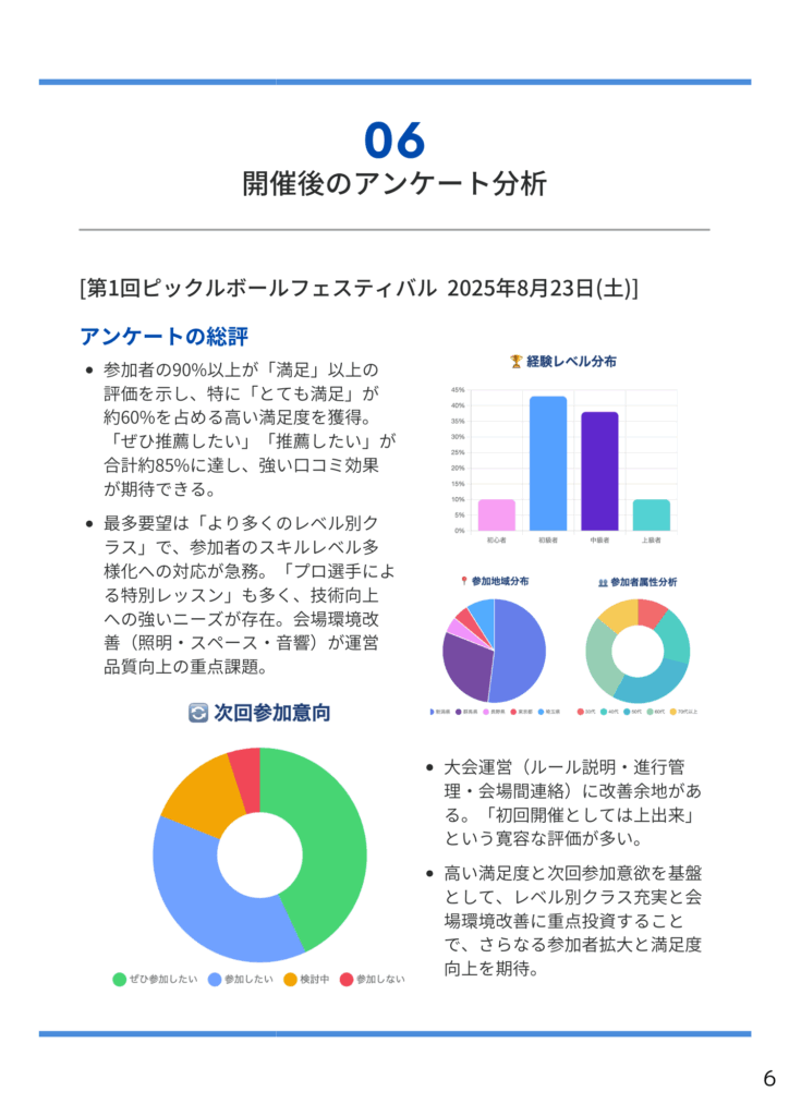 温泉や観光資源と組み合わせた「ピックルボールの聖地」としてのブランド戦略を推進し、連盟や協会、スポーツメーカーと連携することで、国際大会や企業対抗戦の開催地として国内外に強くアピールできます。