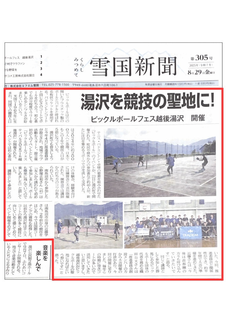 イベントの模様を詳しくご紹介いただき、地域でのピックルボール普及の意義についても取り上げていただきました。(2025年9月4日)